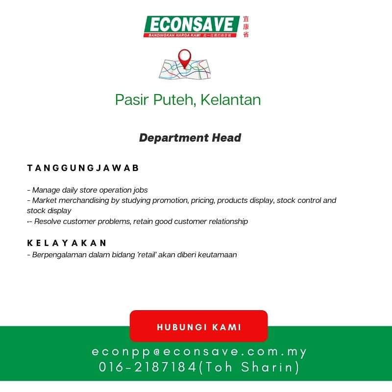 Econsave On Twitter Jawatan Kosong Sebagai Department Head Di Econsave Pasir Puteh Kelantan Kepada Yang Berminat Sila Hantarkan Permohonan Anda Ke Nombor Atau Email Tertera P S Oyak Ko Saing Saing Deh Https T Co O4svhmxogh