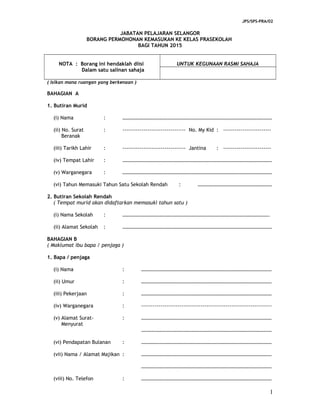 Borang Permohonan Masuk Ke Tahun 1 Pdf